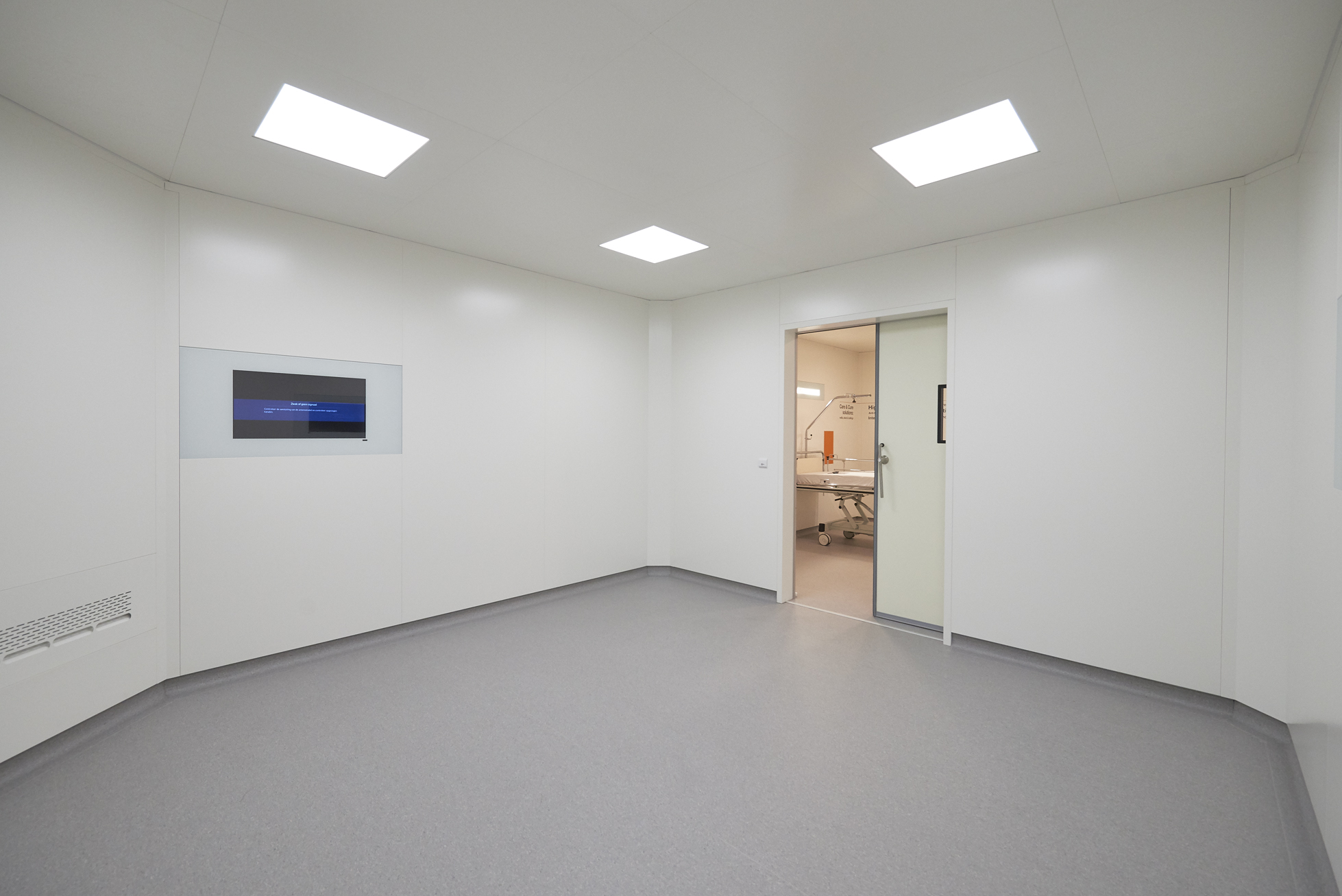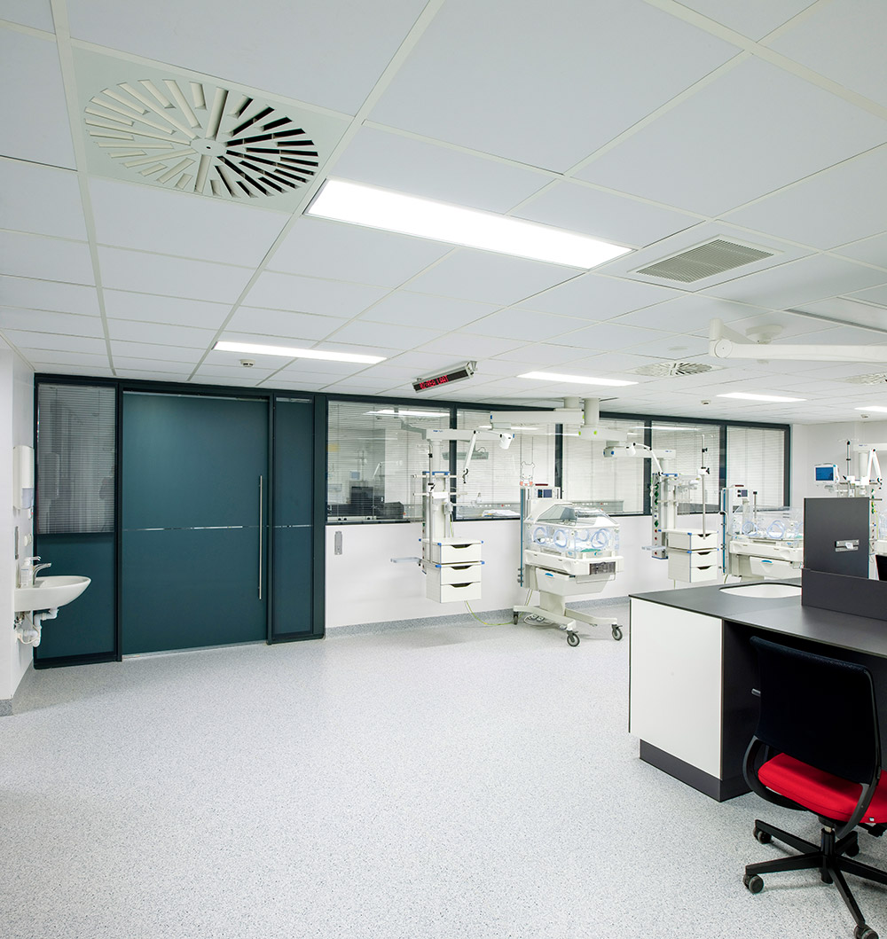 - Customizable cores: Additional to their high acoustic performances, these wall systems often allow for integration of special materials in their core structure to provide special healthcare walls such as X-ray shielding, Anti-Magnetic, Anti-Static ,Anti-Bacterial and Anti-Fungal walls tailored to specific healthcare room requirements.