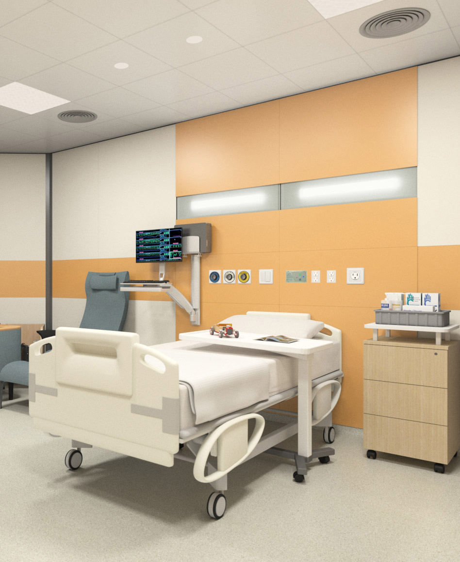 Patient room / Treatment room headwalls are critical wall elements which provides accessible outlets for Medical gases, Electricity, Integrated Lighting and mounting for Special medical equipment. Mounted above the hospital bed, these modular panels allows easy maintenance and service. Maars headwalls based on the String2 system can be mounted horizontally and vertically providing good design flexibility for the Architect.